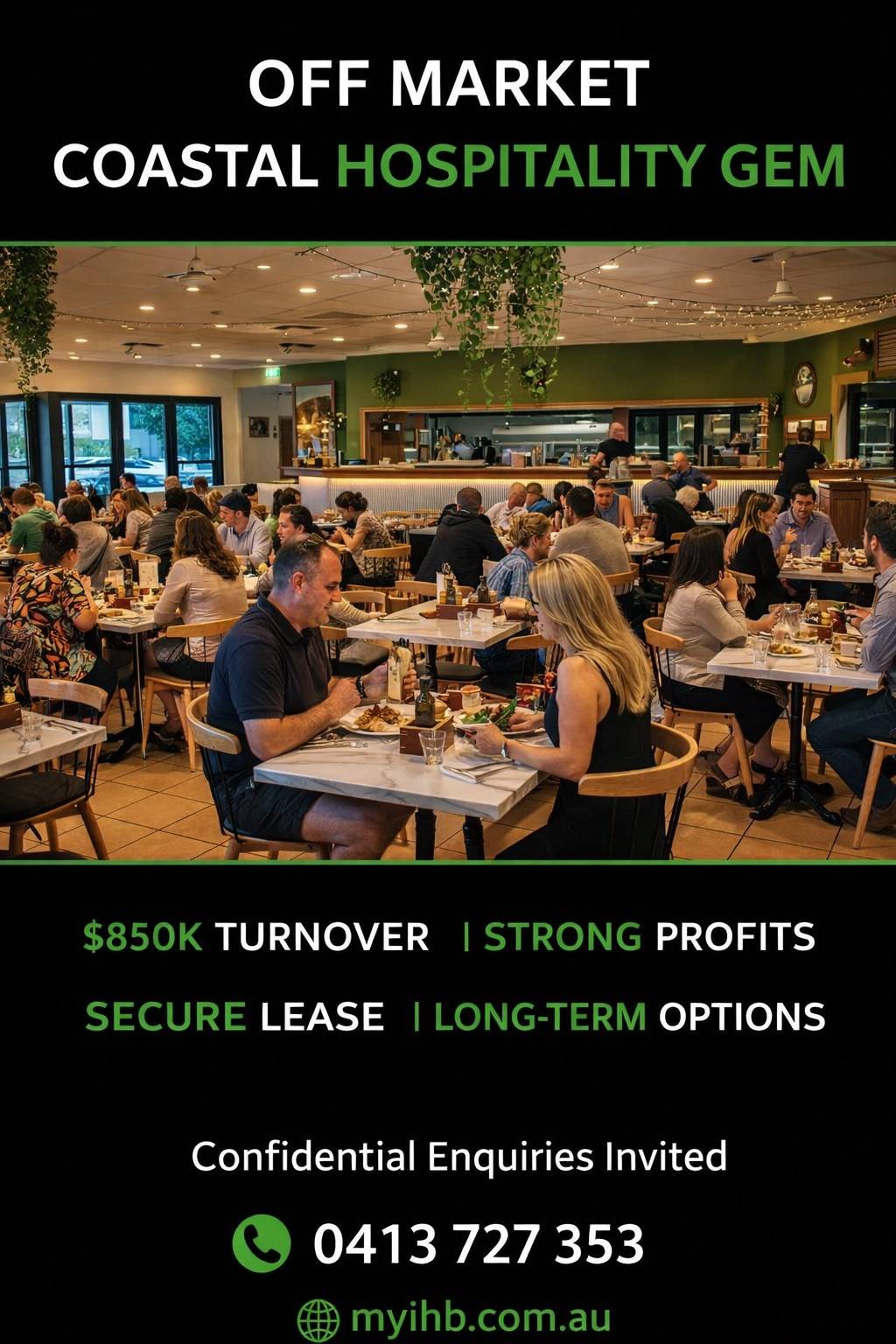 An exceptional opportunity exists to acquire a high-performing, fully established hospitality business positioned within one of Australia’s most desirable coastal regions.